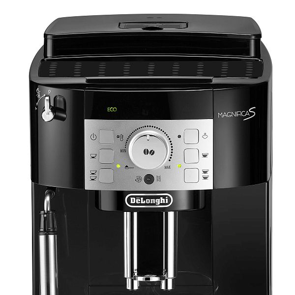 Интеллектуальный термоблок обеспечивает стабильную температуру заваривания, а встроенные программы автоматической промывки и удаления накипи делают уход за машиной простым и удобным. Съёмный заварочный блок легко промывается под проточной водой, гарантируя чистоту и гигиеничность. Компактный корпус в классическом чёрном цвете и стильная передняя панель придают кофемашине современный и сдержанный вид, гармонично вписывающийся в интерьер любого помещения.