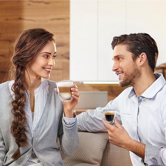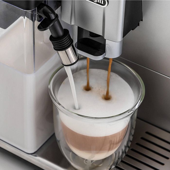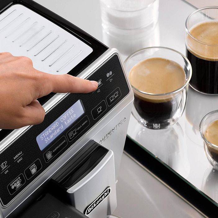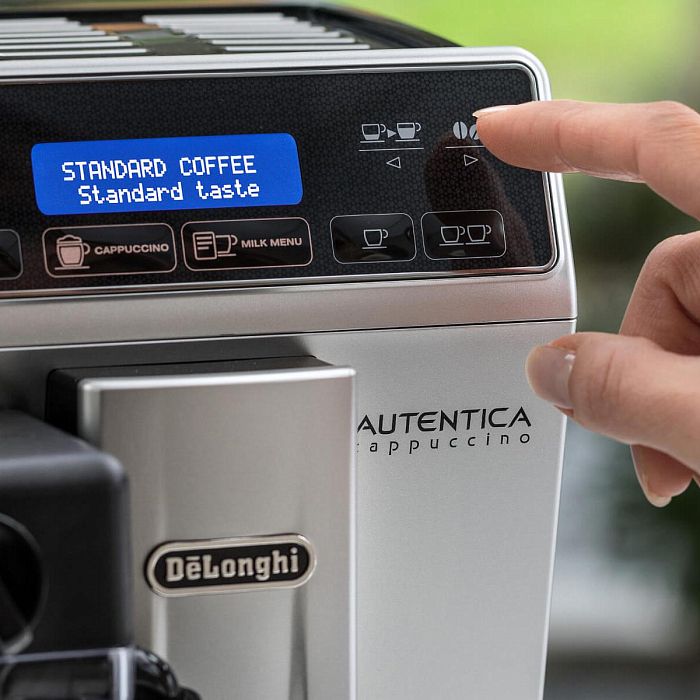 Модель Autentica Cappuccino отличается функциональностью и удобством в использовании. Цифровая панель с подсветкой делает управление понятным и комфортным. Система автоматической промывки и декальцинации, а также наличие съёмного заварочного блока поддерживают кофемашину в идеальном состоянии и продлевают срок службы. Съёмный контейнер для молока можно хранить в холодильнике, а индикаторы уровня воды, кофейного жмыха и контейнер для зёрен позволяют легко отслеживать и контролировать все этапы процесса приготовления напитков. Энергоэффективный режим Eco и функция автоматического отключения помогают экономить электроэнергию. Стильный металлический корпус в сочетании с лаконичным дизайном делает кофемашину настоящим предметом эстетики. Autentica Cappuccino — кофе, который превращает каждый день в маленькое наслаждение.
