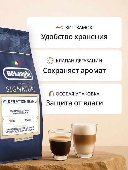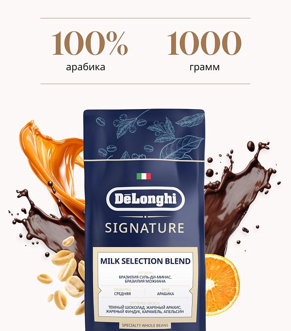 Кофе в зернах DeLonghi Signature coffee Milk selection blend
