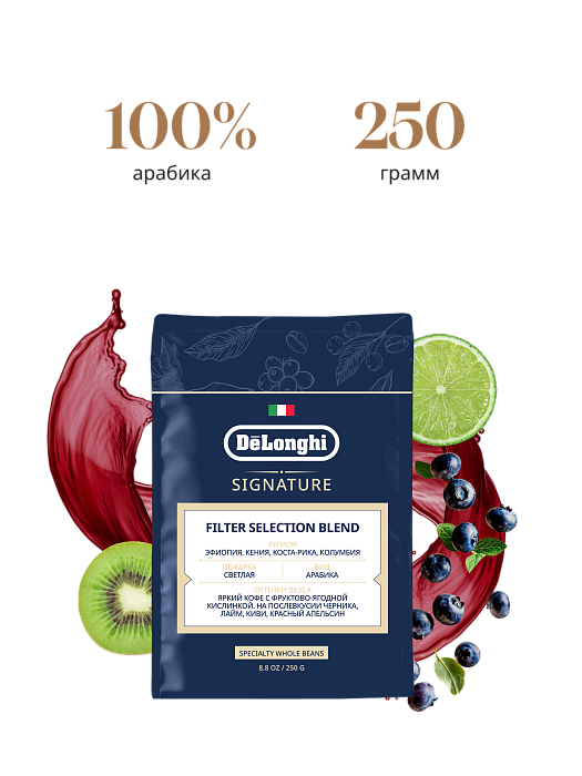 Кофе De’Longhi станет прекрасным дополнением к завтраку, поможет взбодриться во время рабочего дня и создаст уютную атмосферу для вечерних посиделок. Зерновой кофе De’Longhi великолепный подарок по любому поводу. В Официальном магазине De’Longhi Group вы найдете большой выбор – кофе в зёрнах 1 кг, 800 г. и 250 г. на любой вкус, а также, подарочные наборы.