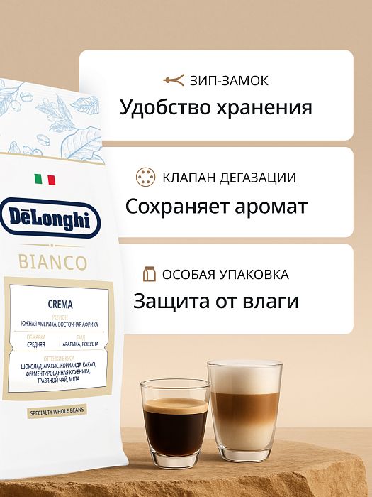 Кофе в зёрнах DeLonghi Bianco Crema 800gr