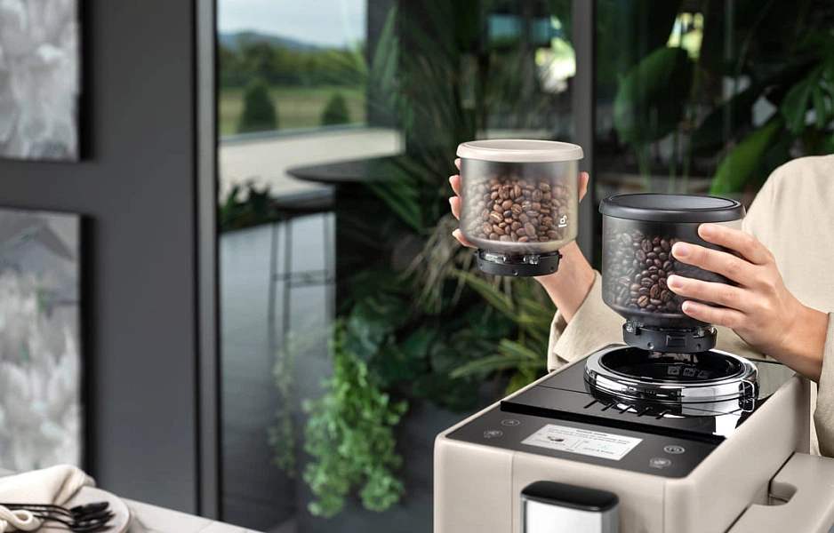 Кофемашины линейки Rivelia – это новое поколение автоматических кофемашин, которые подстраиваются под ваш вкус и ритм жизни. Уникальная система сменных контейнеров для зерен позволяет легко переключаться между сортами и открывает простор для экспериментов, создавая по-настоящему персонализированный кофейный опыт. Модель EXAM440.55.BG оснащена инновационной системой Bean Switch System, позволяющей легко переключаться между разными сортами зерен без необходимости очищать контейнер или перенастраивать кофемашину, а технология Bean Adapt автоматически подстраивает помол, дозировку и температуру под выбранный кофе, обеспечивая идеальную экстракцию и сбалансированный вкус. Кофемашина предлагает до 16 видов напитков — от классического эспрессо и американо до изысканных латте макиато и флэт уайт. Фирменная система LatteCrema Hot создает плотную и бархатную молочную пену для каждого рецепта. А интеллектуальная функция Coffee Routines анализирует ваши привычки и адаптирует меню в течение дня, предлагая напитки, которые лучше всего соответствуют вашему ритму жизни.