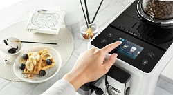 Кофемашины линейки Rivelia – это новое поколение автоматических кофемашин, которые подстраиваются под ваш вкус и ритм жизни. Уникальная система сменных контейнеров для зерен позволяет легко переключаться между сортами и открывает простор для экспериментов, создавая по-настоящему персонализированный кофейный опыт. Модель EXAM440.55.W оснащена инновационной системой Bean Switch System, позволяющей легко переключаться между разными сортами зерен без необходимости очищать контейнер или перенастраивать кофемашину, а технология Bean Adapt автоматически подстраивает помол, дозировку и температуру под выбранный кофе, обеспечивая идеальную экстракцию и сбалансированный вкус. Кофемашина предлагает до 16 видов напитков — от классического эспрессо и американо до изысканных латте макиато и флэт уайт. Фирменная система LatteCrema Hot создает плотную и бархатную молочную пену для каждого рецепта. А интеллектуальная функция Coffee Routines анализирует ваши привычки и адаптирует меню в течение дня, предлагая напитки, которые лучше всего соответствуют вашему ритму жизни. Автоматическая кофемашина EXAM440.55.W выполнена в премиальном белом цвете Arctic White, подчеркивающем современный минималистичный дизайн.