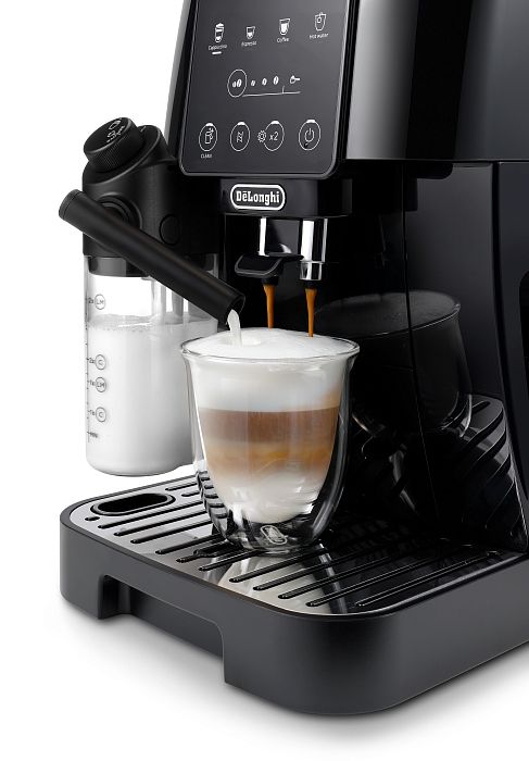 Magnifica Start – это линейка самых компактных автоматических кофемашин De’Longhi, сочетающая простоту использования, надежность и продуманную функциональность. Модель ECAM220.60.B оснащена встроенной кофемолкой с 13 степенями помола, обеспечивающей возможность настройки степени измельчения кофейных зерен в зависимости от сорта и желаемой крепости напитка. (В кофемашине поддерживается использование как зернового, так и молотого кофе.) Пользователь может регулировать крепость напитка — от мягкого до насыщенного. Кофемашина предлагает четыре предустановленных рецепта напитков с возможностью индивидуальной настройки параметров. Функция “x2” позволяет одновременно приготовить двойную порцию эспрессо.