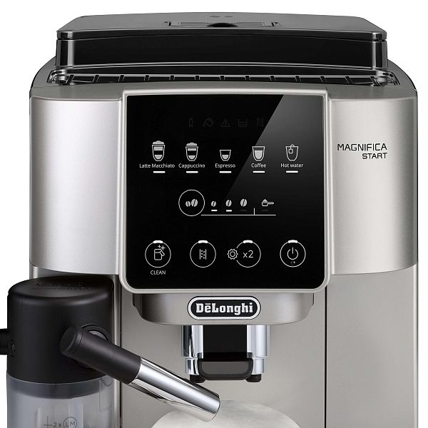 Magnifica Start – это линейка самых компактных автоматических кофемашин De’Longhi, сочетающая простоту использования, надежность и продуманную функциональность. Модель ECAM220.80.SB оснащена встроенной кофемолкой с 13 степенями помола, обеспечивающей возможность настройки степени измельчения кофейных зерен в зависимости от сорта и желаемой крепости напитка. (В кофемашине поддерживается использование как зернового, так и молотого кофе.) Пользователь может регулировать крепость напитка — от мягкого до насыщенного. Кофемашина предлагает четыре предустановленных рецепта напитков с возможностью индивидуальной настройки параметров. Функция “x2” позволяет одновременно приготовить двойную порцию эспрессо.