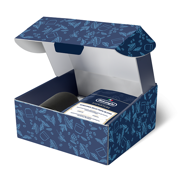 В наборе представлена одна пачка кофе Africana Selection Blend 250 гр. и одна фирменная кружка ручной работы 250 мл. Фирменная кофейная кружка DeLonghi произведена из высокопрочной керамики и пищевой глазури. Массивные стенки кружка позволяет дольше сохранять тепло напитка и при этом не обжигать руки. Идеально подходят для капучино, латте и других напитков с температурой ниже 70 (для более горячих напитков рекомендуется использовать кружки с ручками). Важнейшей характеристикой керамики является влагопоглащение, которое составляет всего 0,2 %. Это говорит о плотности материала, его долговечности и устойчивость к механических воздействиям. Посуду можно мыть в посудомоечной машине.
