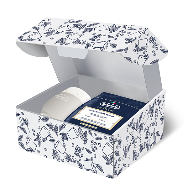 В наборе представлена одна пачка кофе Milk Selection Blend 250 гр. и одна фирменная кружка ручной работы 230 мл. Фирменная кофейная кружка DeLonghi произведена из высокопрочной керамики и пищевой глазури – это гарантирует долговечность и устойчивость к механических воздействиям. Посуду можно мыть в посудомоечной машине.