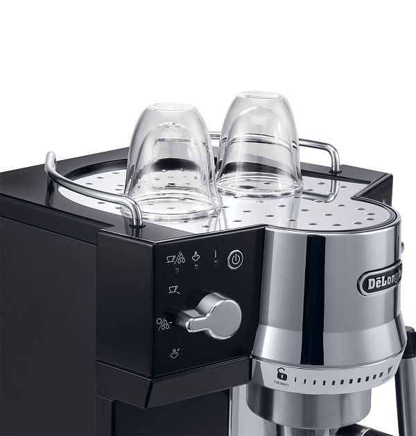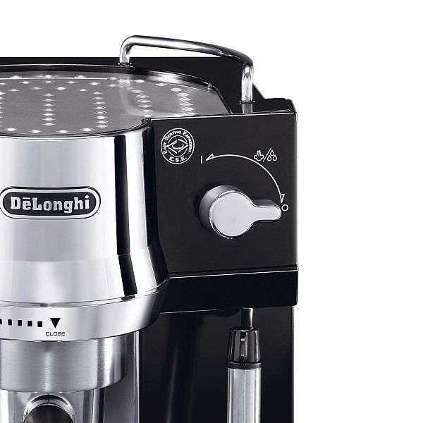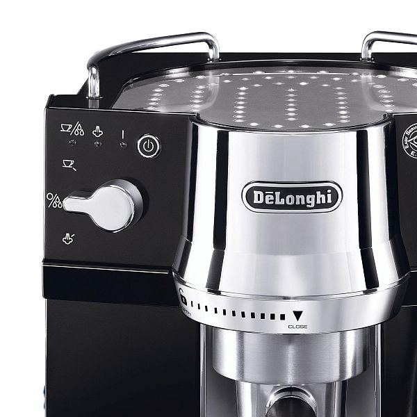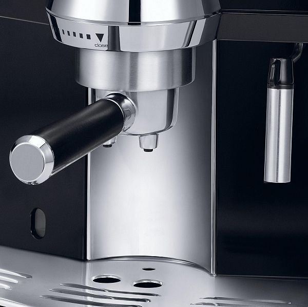 Дизайн рожковой кофеварки EC820.B выдержан в сдержанном, классическом стиле: монохромный чёрный корпус, аккуратные линии и хромированные акценты подчёркивают премиальность и эстетическую чистоту устройства. Материалы тщательно подобраны для долговечности: корпус устойчив к внешним воздействиям, детали рожка и капучинатора служат долгие годы, а поверхность остаётся привлекательной даже при ежедневном использовании.